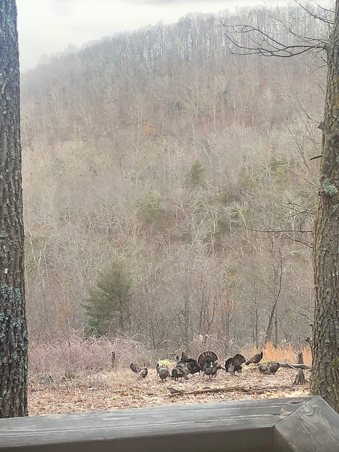- Tons of wildlife, including turkeys, deer, bear, coyotes, foxes, hogs, bobcats, bald eagles, barred owls, and flying squirrels. We’ve heard elk bugling, but no sightings yet